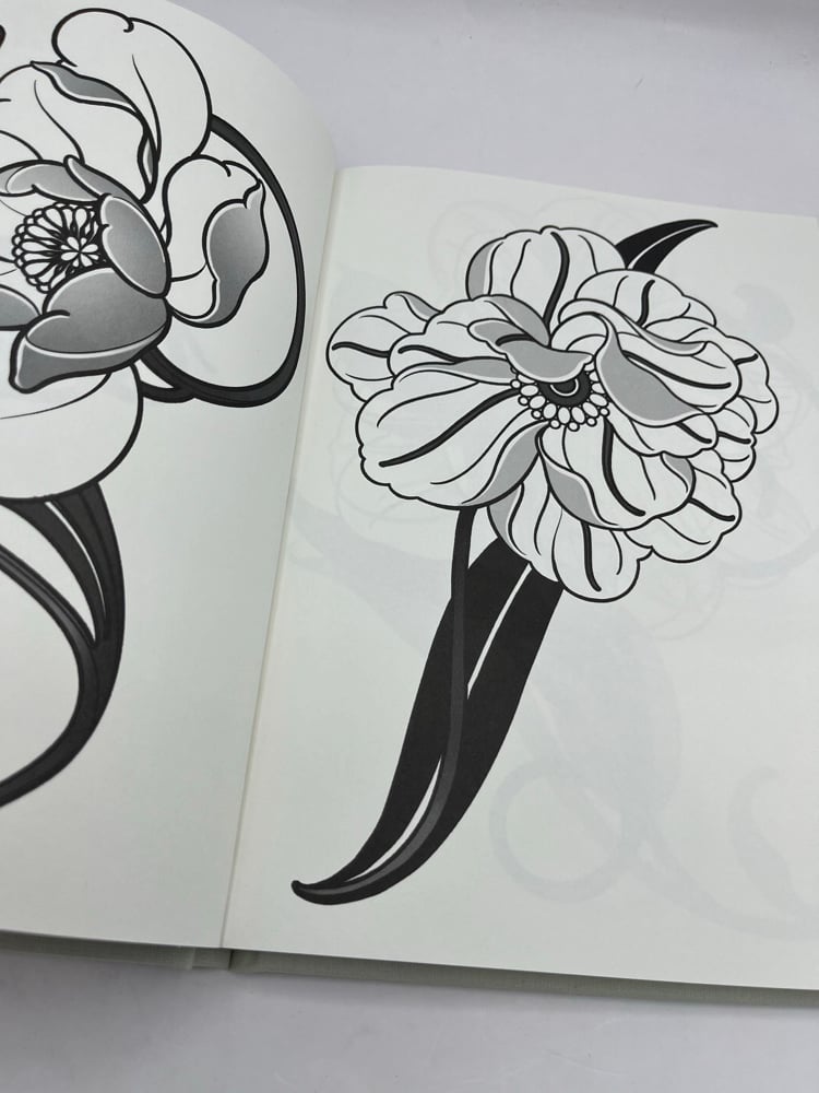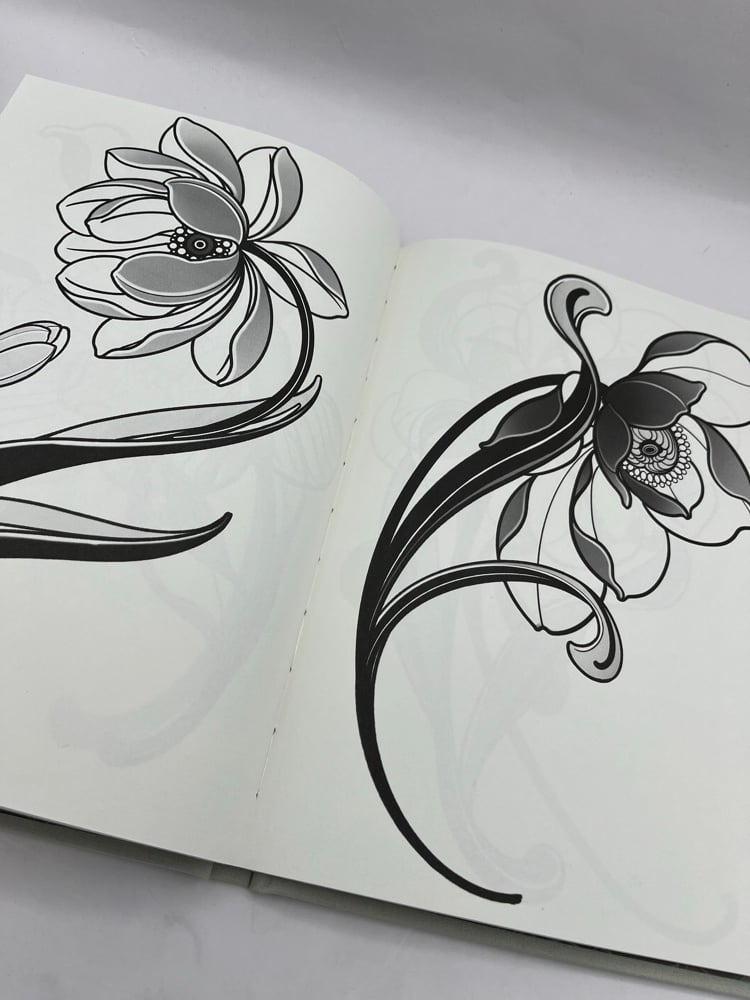 Each flower that appears in this book has been reinterpreted by hand by Daniels Bauti, a tattoo artist and illustrator from Mallorca, through his own Flornamental style, where ornamentation and natural structure intertwine to create a unique visual language.